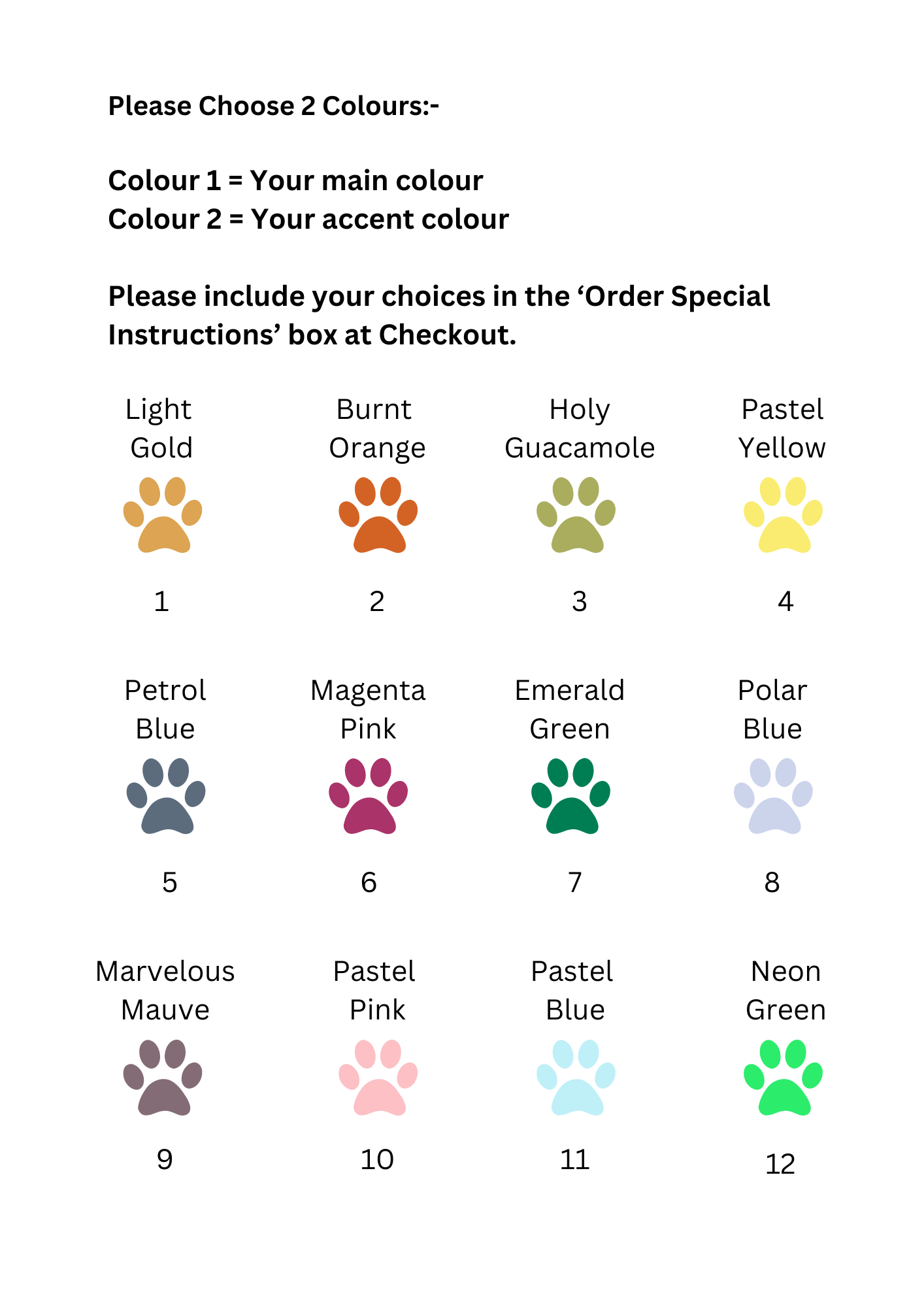 Choose from a variety of colours to suit your style. Please include your 2 colour choices in the 'Order Special Instructions' box as you go through Checkout.